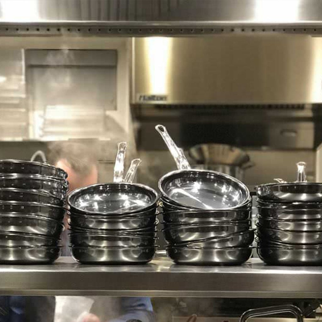 NanoBond was designed to deliver exceptional results in professional kitchens. So it should provide a lifetime of brilliant performance in yours. Not only is the cooking surface exceptionally resilient, it’s remarkably easy to clean – and flush rivets prevent food particle build up. NanoBond is high-heat tolerant to 1050°F. So it’s perfect for searing meats or even cooking on the grill.